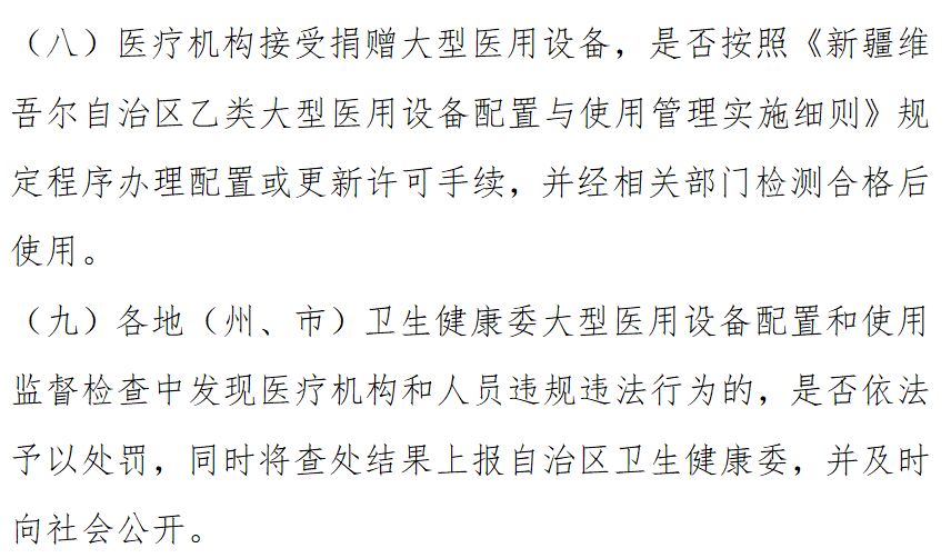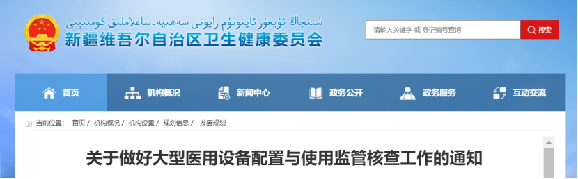 近日,新疆衛(wèi)健委發(fā)布《關(guān)于做好大型醫(yī)用設(shè)備配置與使用監(jiān)管核查工作的通知》(以下簡(jiǎn)稱《通知》),開展醫(yī)療機(jī)構(gòu)(含社會(huì)辦醫(yī))大型醫(yī)用設(shè)備配置(更新)與使用監(jiān)管核查工作。