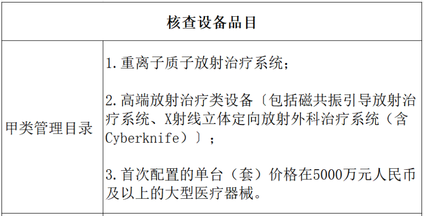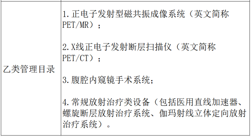 國(guó)家衛(wèi)健委發(fā)布的《大型醫(yī)用設(shè)備配置許可管理目錄(2023年)》,積極落實(shí)“放管服”改革要求,對(duì)技術(shù)成熟、性能穩(wěn)定、應(yīng)用規(guī)范的設(shè)備,積極推動(dòng)由甲類改為乙類或由乙類調(diào)出目錄。與2018年版目錄相比,新版目錄的管理品目由10個(gè)調(diào)整為6個(gè)。正電子發(fā)射型磁共振成像系統(tǒng)(PET/MR)由甲類調(diào)整為乙類。64排及以上X線計(jì)算機(jī)斷層掃描儀、1.5T及以上磁共振成像系統(tǒng)調(diào)出管理品目。