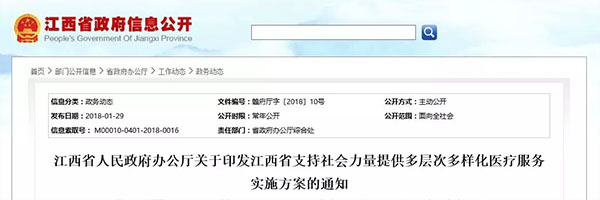 這不,1月23日,江西省人民政府發(fā)布了《江西省支持社會力量提供多層次多樣化醫(yī)療服務(wù)實施方案》。其中明確,經(jīng)營不善的公立醫(yī)院可采取改制、托管或公辦民營等形式引入社會力量。