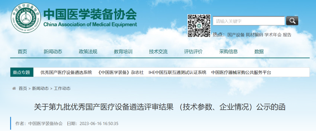 近日,中國(guó)醫(yī)學(xué)裝備協(xié)會(huì)公示了第九批優(yōu)秀國(guó)產(chǎn)醫(yī)療設(shè)備產(chǎn)品遴選評(píng)審結(jié)果。
