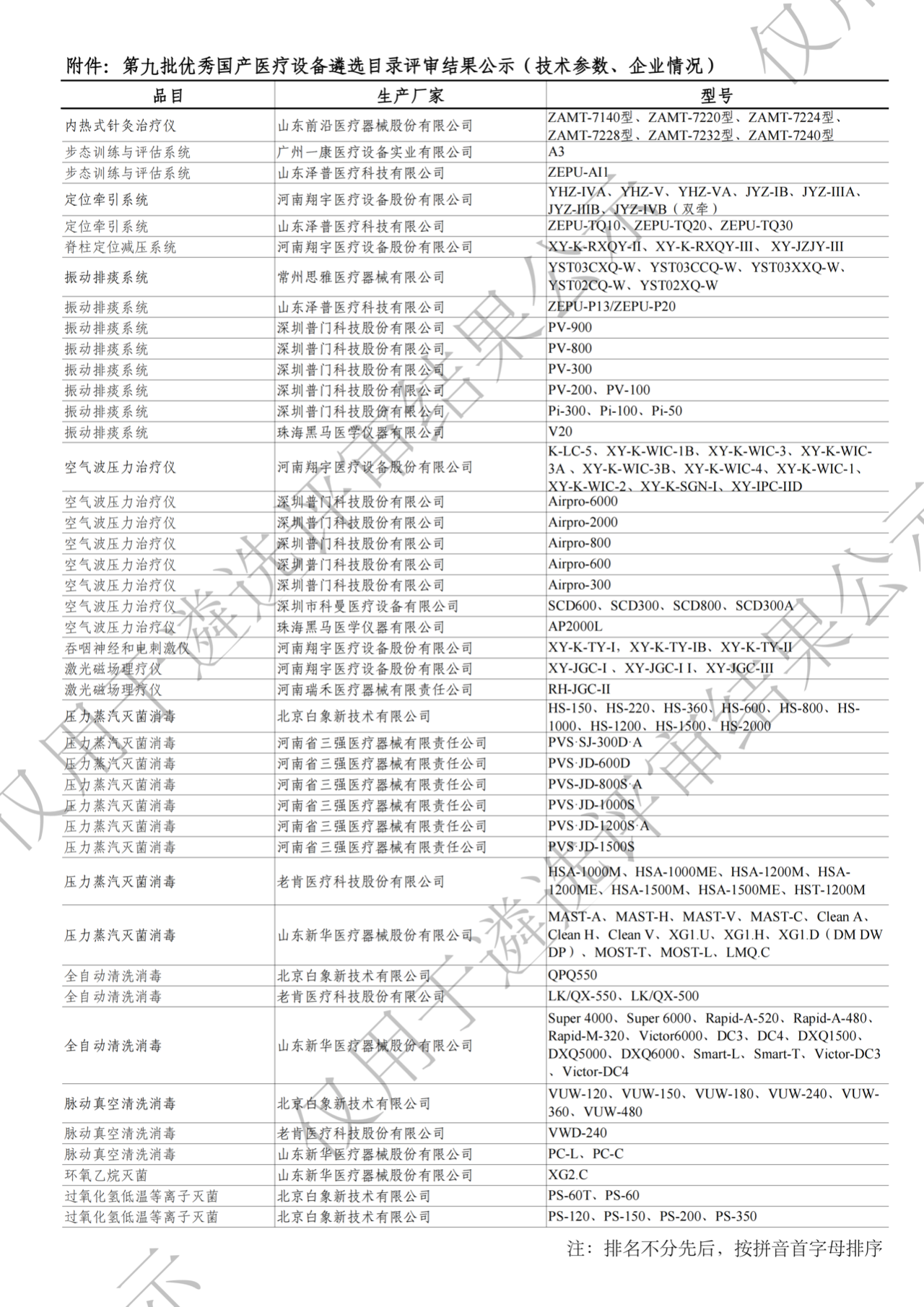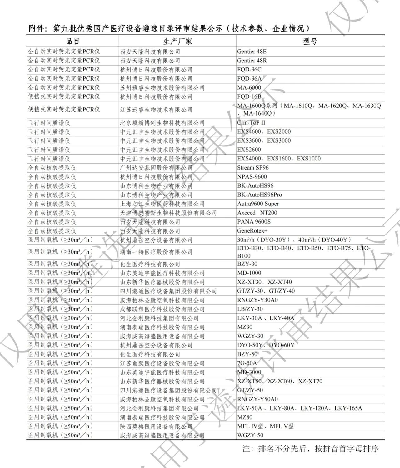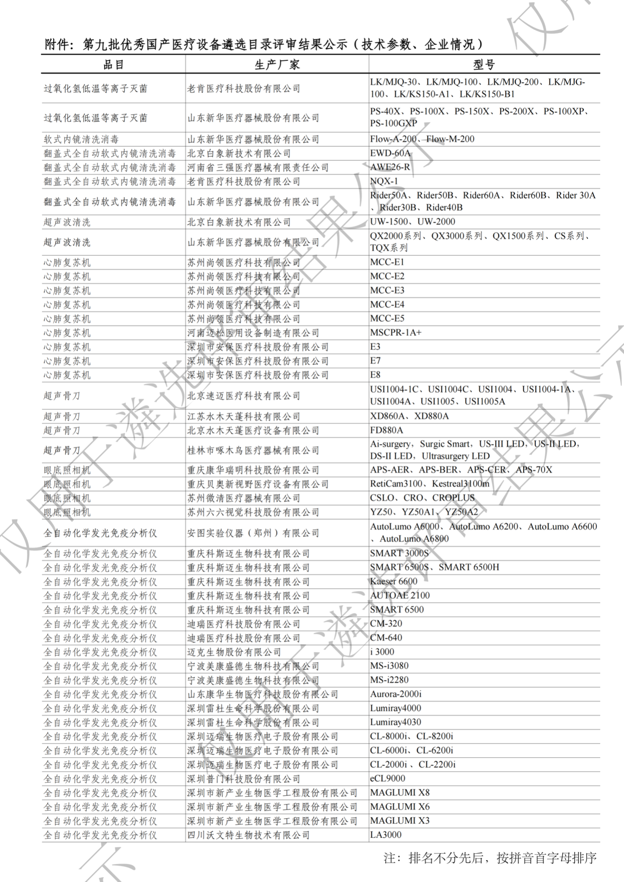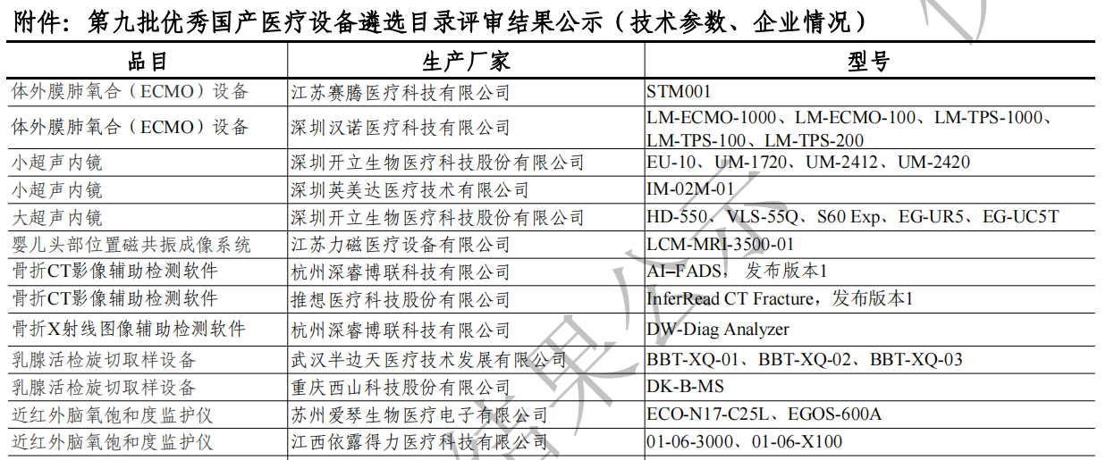 附:第九批優(yōu)秀國(guó)產(chǎn)醫(yī)療設(shè)備產(chǎn)品目錄