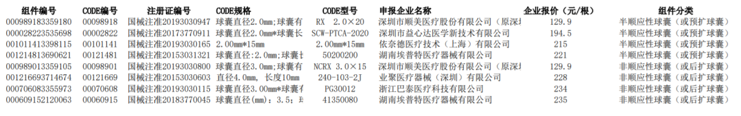 其中冠脈擴張球囊擬中選企業包括深圳市順美醫療股份有限公司、深圳市益心達醫學新技術有限公司、依奈德醫療技術(上海)有限公司等,上述三家企業報價分別為129.9元、194.5元、215元。