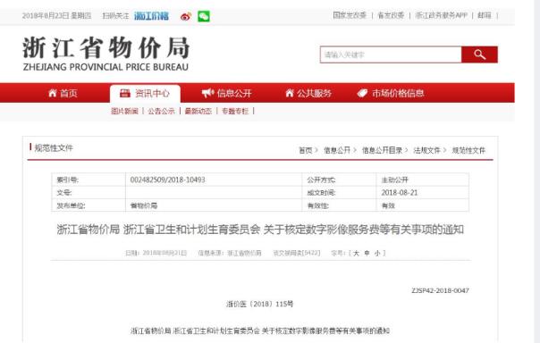 近日,浙江省物價局聯(lián)合浙江省衛(wèi)計委員會印發(fā)了《關(guān)于核定數(shù)字影像服務(wù)費等有關(guān)事項的通知》(以下簡稱通知),其中,對數(shù)字影像的服務(wù)費用公立醫(yī)院收費不能超過20元尤為引人注意。