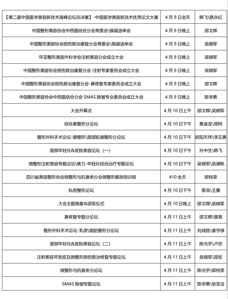 中國(guó)醫(yī)學(xué)美容新潮流,傳播中國(guó)醫(yī)學(xué)美容新理念,展示了中國(guó)醫(yī)學(xué)美容新技術(shù)的發(fā)展趨勢(shì),并促進(jìn)了相關(guān)成果的交流和推廣。為持續(xù)推動(dòng)中國(guó)醫(yī)學(xué)美容的發(fā)展與繁榮,2021第二屆中國(guó)醫(yī)學(xué)美容新技術(shù)高峰論壇、2021中國(guó)整形美容協(xié)會(huì)中西醫(yī)結(jié)合分會(huì)西南專委會(huì)學(xué)術(shù)年會(huì)、四川省美容整形協(xié)會(huì)面部整形與修復(fù)再生分會(huì)學(xué)術(shù)年會(huì)擬于2021年4月8日至4月11日在中國(guó)醫(yī)美之都——成都召開(kāi)。