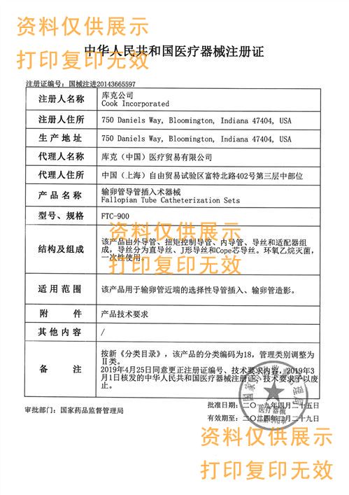美國庫克COOK輸卵管導管插管插入術套裝FTC-550 FTC-550-NT