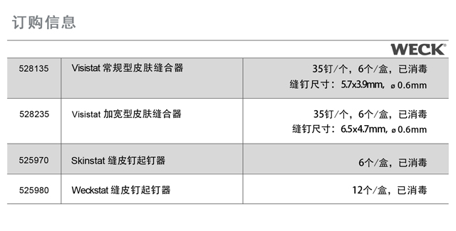 作為泰利福旗下的外科Weck系列產(chǎn)品之一威客皮膚縫合器,同時滿足了外科醫(yī)生對于醫(yī)用器械安全易用的需求以及患者快速恢復的愿望。使用視頻請戳此鏈接